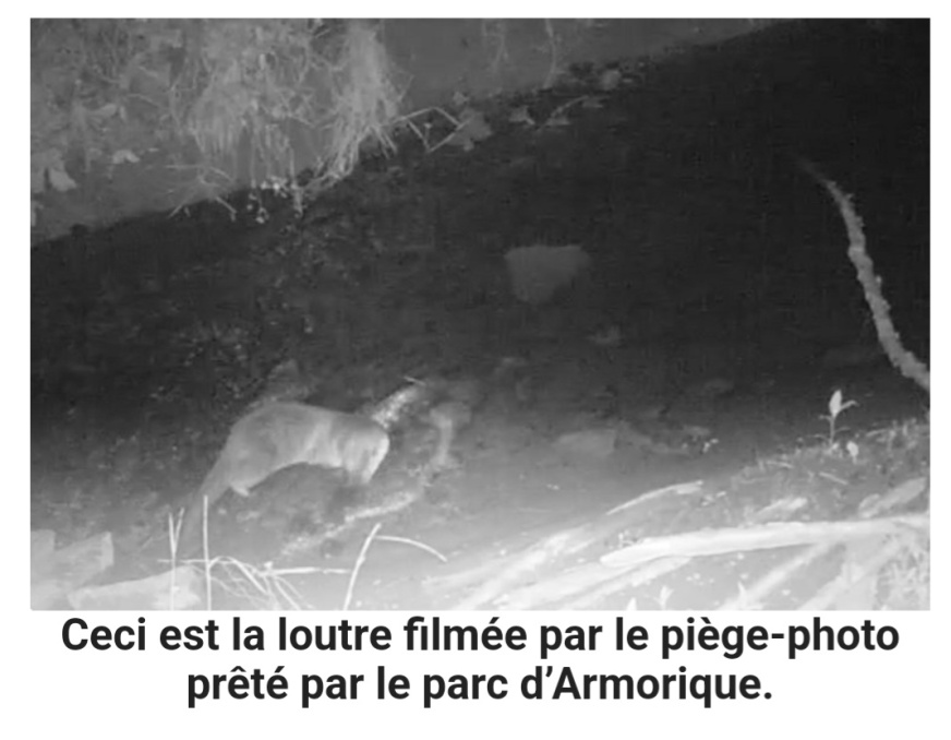 "En juin 2022, grâce qu prêt d’un piège-photo par le Parc d’Armorique, nous avons appris qu’une loutre avait pris ses quartiers dans l’ATE du collège. Une aire terrestre éducative est un lieu dont nous essayons de préserver la faune et la flore. Nous menons des actions d’observation, d’information, de communication, et bientôt d’aménagement. Nous avons découvert l’existence d’une loutre dans la rivière de notre ATE. Nous essayons de préserver cette loutre, et les autres animaux qui l’occupent. Par exemple : en informant les gens de son existence, en entretenant des mares pour que la loutre puisse se nourrir de têtards. " La classe de 5e 1