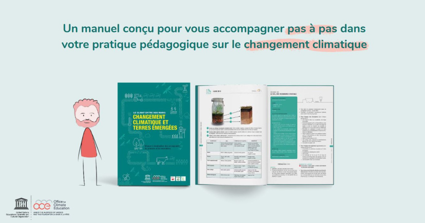 - Un guide pédagogique interdisciplinaire : “Le Climat entre nos mains - Changement climatique et Terres émergées”, qui propose une progression complète et modulable. Guide pédagogique pdf.